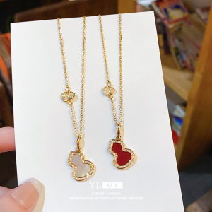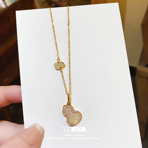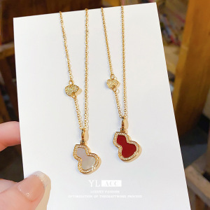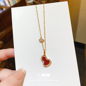 新しい中国風のチタン鋼ステンレス鋼ダイヤモンドひょうたんネックレスライト高級国民風ニッチ気質ハイエンド鎖骨ネックレス女性用