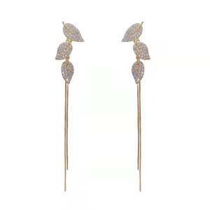 ライトラグジュアリーロングダイヤモンドリーフタッセルイヤリングニッチデザインハイエンドイヤリング2025新しいホットスタイルイヤリング