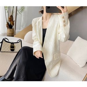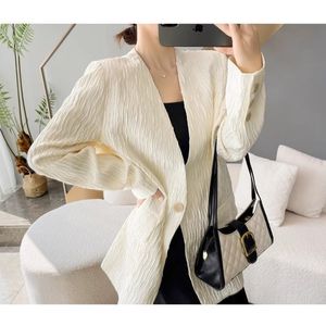 女性のためのベージュのハイエンド V ネック スーツ ジャケット 2025 春夏の新しいハイエンドのファッショナブルな日焼け止めスーツ トップ