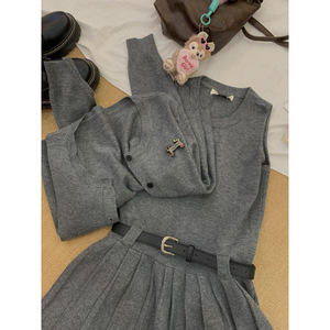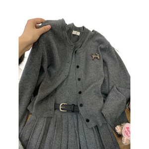 针织衫开衫背心百褶连衣裙两件套装女2025春季法式气质设计感显瘦