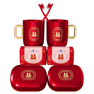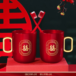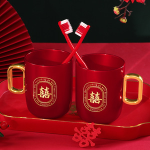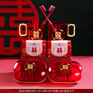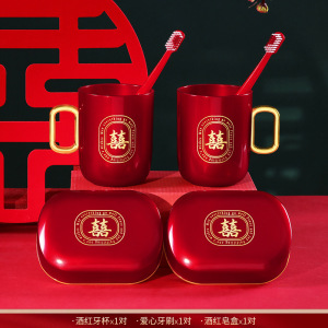 ウェディングウォッシュセット、ウェディングカップ、ウェディングレッド歯ブラシ、マウスウォッシュカップ、ソープボックス、女性の持参金アイテム