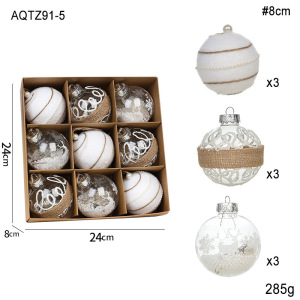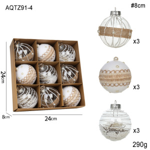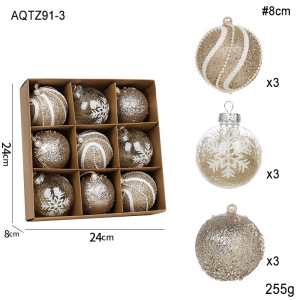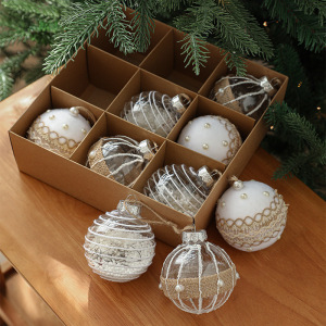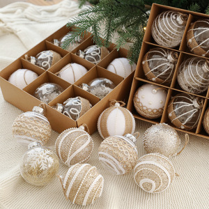 国境を越えた箱入り8CMクリスマスボール、プラスチックボール、フォームボールセット、粘着性のあるライン入りクリスマスツリーハンギングボール、クリエイティブなデザイン