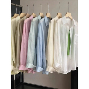 天糸シワさん日焼け止めシャツ2025夏の新しい中丈の薄い紫外線がゆったりしていて、通気性がよくて痩せています。