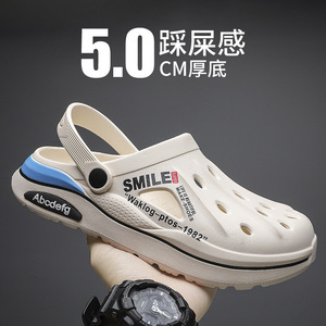スポット卸売り洞靴男夏外着運転厚い底滑り止め防臭PVC潮男百合ビーチサンダル
