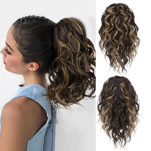 欧米の卸売ポニーテールのかつらの女性の短いふわふわした波のカールの自然なクリップポニーテール
