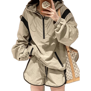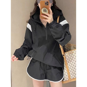 カジュアルジャケットスポーツスーツレディース夏新作日焼け止めショートジャケットトップショーツアメリカンパンツ2点セット