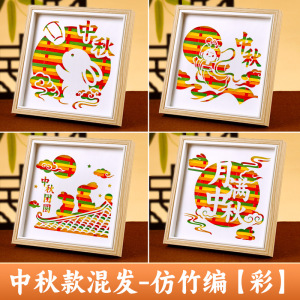 中秋節の手作り竹絵DIY素材パック、子供向け手編み工芸品、無形文化遺産体験、チームビルディング活動