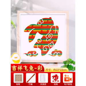 紙と竹の織物【中秋節シリーズ】カラー-中秋節翡翠兎