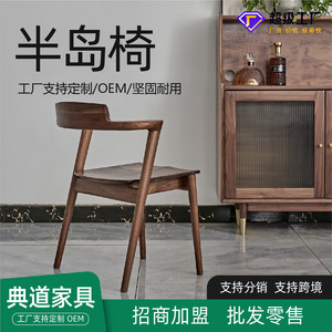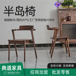 北米産ブラックウォールナットダブダイニングチェアモダンシンプルブックチェアレジャーチェアティーチェア背もたれ椅子ショートアームレストペニンシュラチェア