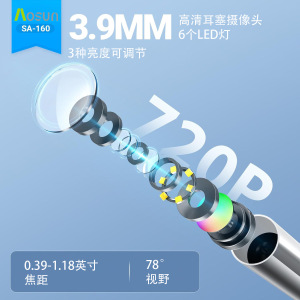 Aosun SA-160数字智能耳镜可放大可拆卸延长