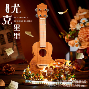 ロマンチックな灯台のバラの永遠の花の街並みのギターウクレレの創意の置物の組み合わせのおもちゃの小さい女子学生のプレゼント