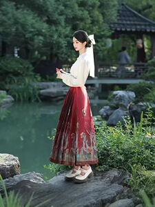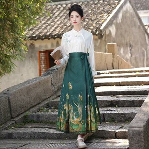 重工化粧花織金国風漢服明製馬面スカートセット女性2025新中国式実写馬面スカートセット