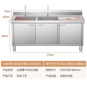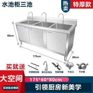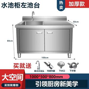 304特厚ステンレスキャビネット水槽皿洗い池家庭用野菜洗浄池テーブル全体溶接キッチンキャビネット