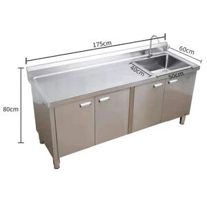 【304】極厚ステンレス鋼、食品グレード、20年間の耐久性 - 長さ175、幅60、高さ80cm、左シングルプール、右プラットフォーム