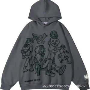 ラインキャラクタープリントフード付きスウェットシャツボーイズハイストリートファッションブランドデザインニッチルーズ秋冬プルオーバーパーカー