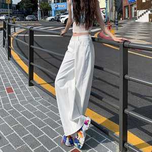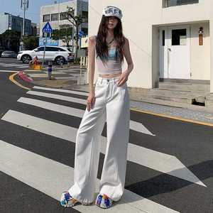 代发批发夏日炸街小众高级感纯色宽松阔腿拖地裤女牛仔长裤加长