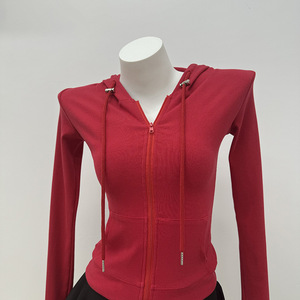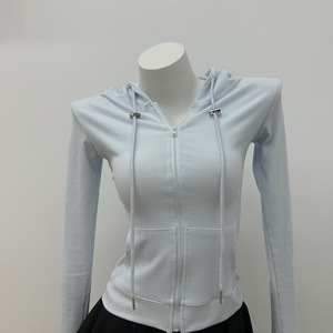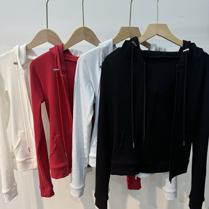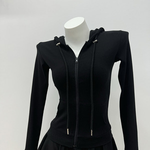 バナナボスと同じ韓国風スリムジャケットシンプル無地スリム長袖フード付きエリースウェットシャツカーディガントップ女性用