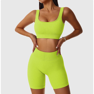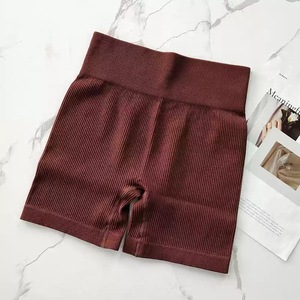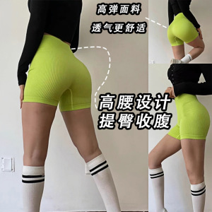 ヨーロッパとアメリカの女性用ハイウエストシームレスフィットネスショーツ、夏のヒップリフティングタイトな3点ヨガパンツ、通気性のある糸入りストレッチスポーツパンツ