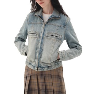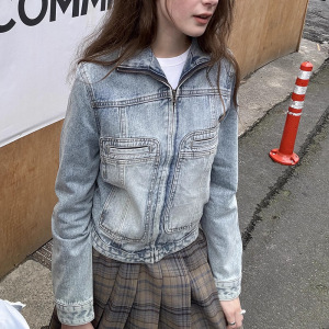 街头复古做旧浅蓝色牛仔外套女春秋新款设计感小个子夹克短款上衣