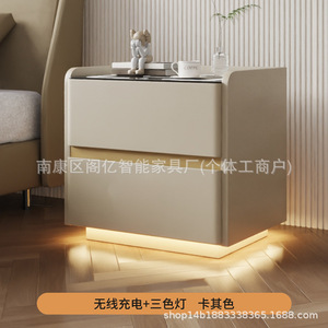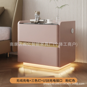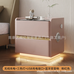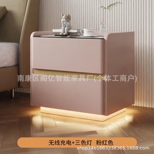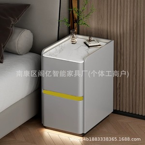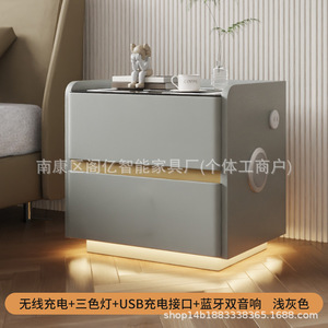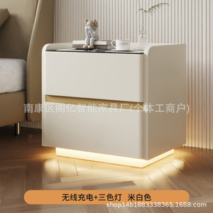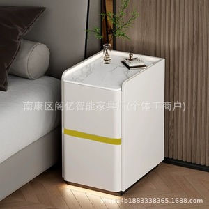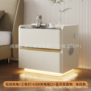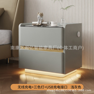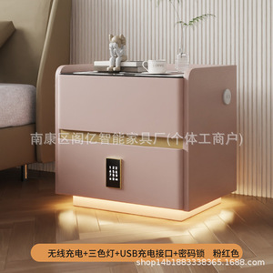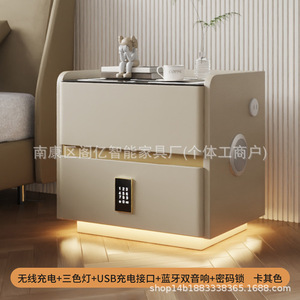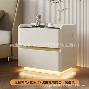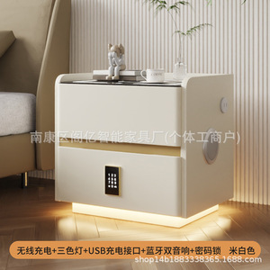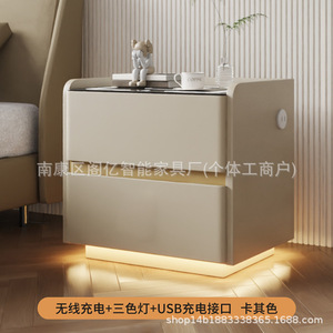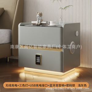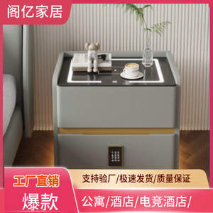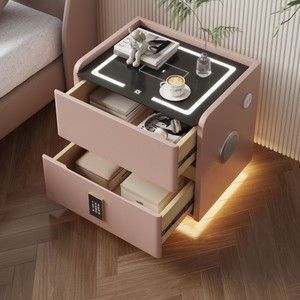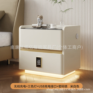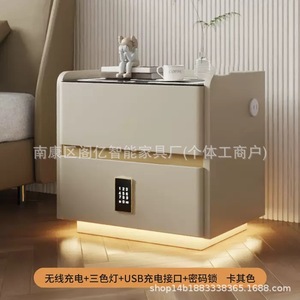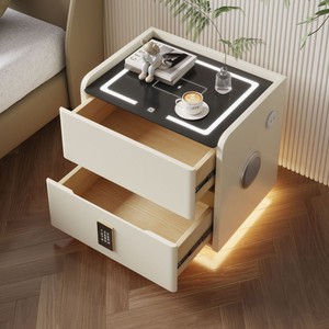 センサーライト指紋ロック付き軽量高級スマート無垢材ベッドサイドテーブルモダンシンプルホームベッドルーム多機能収納キャビネット
