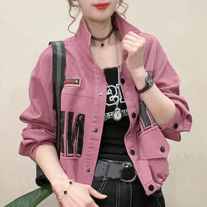 女性用ショートデニムジャケット2025春の新作ファッショナブルで年齢を軽減する多用途デザインレターネットセレブトップ