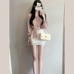 轻熟风套装裙系带衬衫纯欲金秘书飘带长袖上衣蕾丝包臀短裙两件套