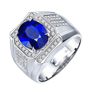 横暴でファッショナブルな男性用ラージ ネイキッド ダイヤモンド シーブルー サファイア イミテーション トパーズ リング、18K ゴールドメッキ、ダイヤモンドがちりばめられた男性用リング