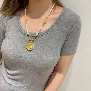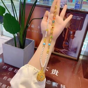 フィリグリー古代ゴールド五福中空ディスクロングホワイトシェルビーズネックレスセーターチェーン新しい中国風の漢服アクセサリー女性用