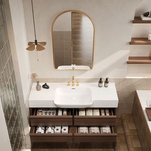 Qimei Stone オールインワン洗面台 バスルームキャビネット 洗面台 カウンタートップ オールインワン洗面台キャビネット 組み合わせバスルーム 浴室