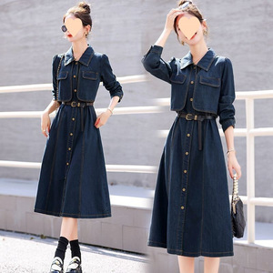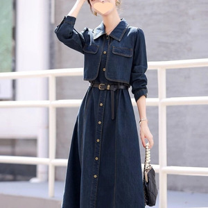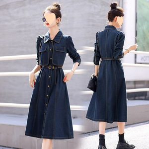 デニム長袖ドレス女性のための春と秋 2025 新しいハイエンドフレンチスタイルウエスト痩身シャツロングスカート
