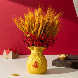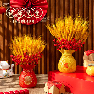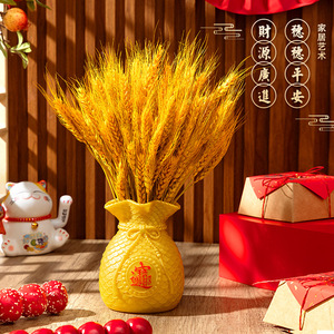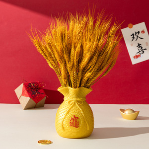 小麦の穂の装飾品、天然金大麦のドライフラワーの花束、福袋、金袋、リビングルームの装飾品、小麦の穂の装飾品