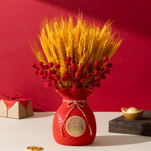 赤いお金の袋+小麦の穂100本【徳彩徳府】