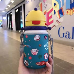 ベビー保温カップカバー 450ml 子供用ハンドル付き恐竜ストローカップ 水筒カバー 保護カバー 漫画柄 厚手 耐衝撃