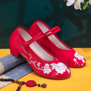 古代スタイルの靴、新しい古い北京布靴、女性用レトロスタイルのチャイナドレス、ハイヒールの漢服刺繍靴、女性用