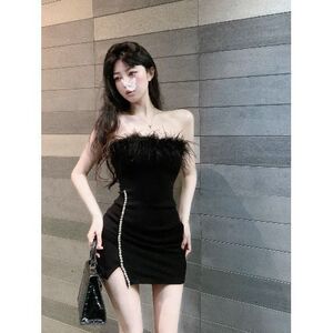 [国境を越えた卸売] チューブトップスリットドレスレディース夏新作ボトムスカートスリムフィットショートスカート