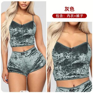 2024 新しいアマゾン 3 点ヨーロッパとアメリカの貿易セクシーな V ネックキャミソールセット下着セットセクシーな女性