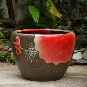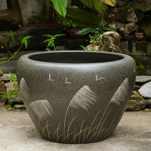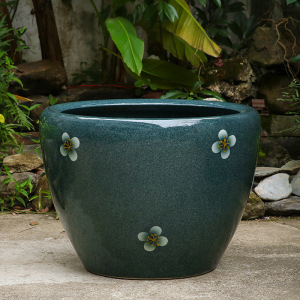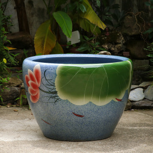 古代の水槽、景徳鎮セラミック大型水槽、魚水槽、アンティーク大型水槽、蓮、スイレン、屋外中庭植樹水槽