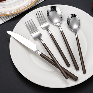 韓国の丸いハンドル - シルバーブラウンのテーブルスプーン