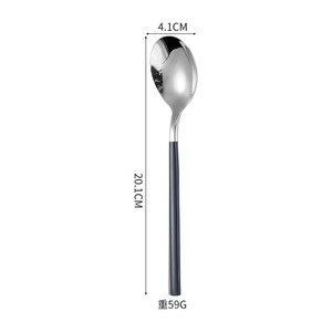 韓国の丸いハンドル - 黒と銀のデザートスプーン
