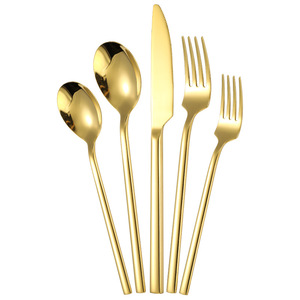 ステンレス鋼のナイフとフォーク韓国ラウンドハンドルスプーン西洋ゴールデンステーキナイフとフォークスプーンデザートフォーク 5 点セット工場卸売