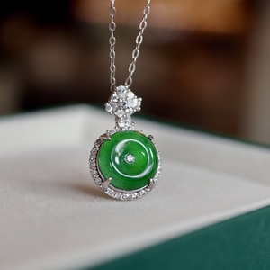天然A級翡翠平安扣ペンダントS925純銀製 繊細で小さな翡翠ネックレス ドゥインコム商社の生放送