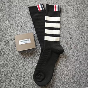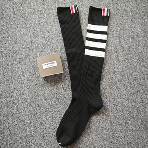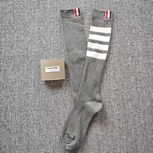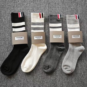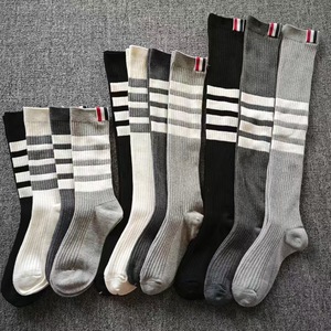 ハイチューブTB四条ストライプ四色ミッドチューブソックス布ラベルカーフソックスコットン日本風オーバーニーソックス万能カジュアル日本風トレンド