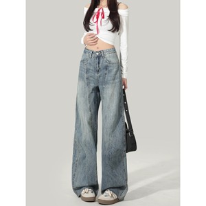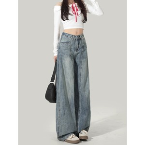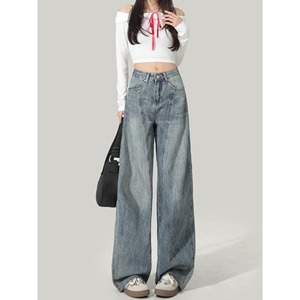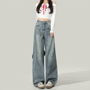美式复古高腰宽松牛仔裤女2025夏季新款宽松设计阔腿裤显瘦镰刀裤