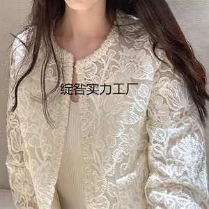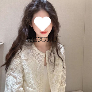 レースカーディガンボトム刺繍長袖デザイン2025シャツ春新作中空スリムシャツトップススパンデックス