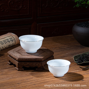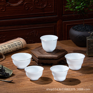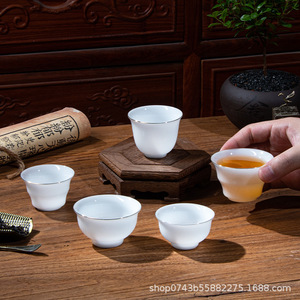 ハイエンドの氷種羊脂翡翠磁器小さなティーカップ白磁セラミックカンフーティーセット家庭用ティーセットゴールドティーカップ