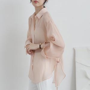 女性用テンセル日焼け止めシャツ、サスペンダースカートとブラウスを合わせた夏用の薄いアイスシルクカーディガン、妖精のようなシフォントップ