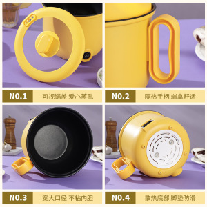 家庭用2速調整電気鍋、蒸し器付き低電力、学生寮インスタントラーメン調理鍋、ミニ電気調理鍋