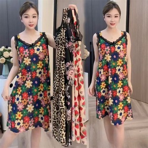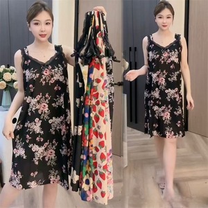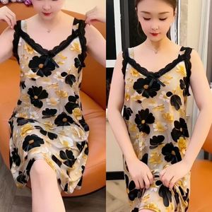 2025 新しいワイドショルダーサスペンダーナイトガウン夏薄いファッション年齢軽減ルーズ大きいサイズの女性のパジャマカジュアルナイトガウン