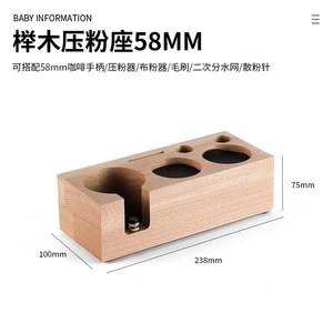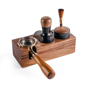 ウォールナットコーヒープレスパウダーホルダーパウダーディスペンサー無垢材ベース収納エスプレッソマシン付属器具セット58mm