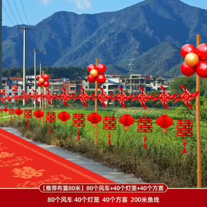 結婚式の道路ガイド田舎の路肩シーンの装飾風車ランタンカラフルな旗結婚式のウェルカムヤード結婚式の部屋用品
